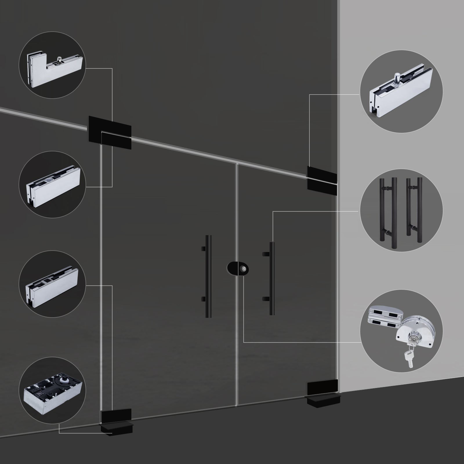 Glass Door Hardware Set including Glass Clamp Patch Fitting Floor Spring Door Lock